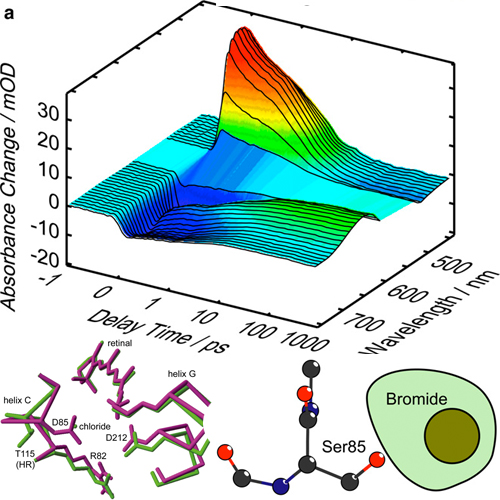 Studies have shown that trans-cis isomerization of retinal is the primary photoreaction in the photocycle of the light-driven proton pump bacteriorhodopsin (BR) from Halobacterium salinarum, as well as in the photocycle of the chloride pump halorhodopsin (HR). The transmembrane proteins HR and BR show extensive structural similarities, but differ in the electrostatic surroundings of the retinal chromophore near the protonated Schiff base. Point mutation of BR of the negatively charged aspartate D85 to a threonine T (D85T) in combination with variation of the pH value and anion concentration is used to study the ultrafast photoisomerization of BR and HR for well-defined electrostatic surroundings of the retinal chromophore. Variations of the pH value and salt concentration allow a switch in the isomerization dynamics of the BR mutant D85T between BR-like and HR-like behaviors. At low salt concentrations or a high pH value (pH 8), the mutant D85T shows a biexponential initial reaction similar to that of HR. The combination of high salt concentration and a low pH value (pH 6) leads to a subpopulation of 25% of the mutant D85T whose stationary and dynamic absorption properties are similar to those of native BR. In this sample, the combination of low pH and high salt concentration reestablishes the electrostatic surroundings originally present in native BR, but only a minor fraction of the D85T molecules have the charge located exactly at the position required for the BR-like fast isomerization reaction. The results suggest that the electrostatics in the native BR protein is optimized by evolution. The accurate location of the fixed charge at the aspartate D85 near the Schiff base in BR is essential for the high efficiency of the primary reaction.