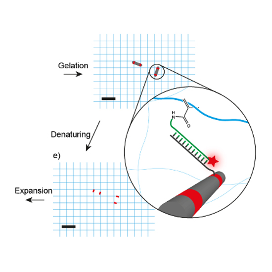 Expansion microscopy evolved as an interesting alternative in the field of super-resolution microscopy by physically expanding the target sample to increase its size by a multiple and to subsequently image the sample by conventional fluorescence microcopy. But the quantitative determination of the expansion factor remains challenging, since microscopic measurement standards are missing. Here we use DNA nanorulers in combination with expansion microscopy to expand the fluorescently marked rulers in 2D and to determine the intermark distances before and after expansion. We compare macroscopic and microscopic expansion factors where we found substantial deviations, which should be considered for the quantitative discussion of expansion microscopy data of biological cells and tissues. The demonstrated proof-of-principle opens a new field with the potential to answer questions with respect to quantitation of microscopic magnification and the introduced expansion nanorulers present a powerful tool to reveal the true origin of anisotropy and heterogeneity in expanded microscopy specimen.