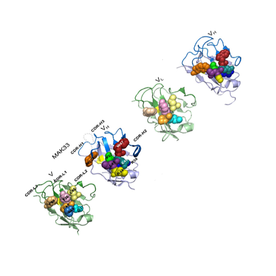 The antibody Fv module which binds antigen consists of the variable domains VL and VH. These exhibit a conserved ß-sheet structure and comprise highly variable loops (CDRs). Little is known about the contributions of the framework residues and CDRs to their association. We exchanged conserved interface residues as well as CDR loops and tested the effects on two Fvs interacting with moderate affinities (KDs of ~2.5 µM and ~6 µM). While for the rather instable domains, almost all mutations had a negative effect, the more stable domains tolerated a number of mutations of conserved interface residues. Of particular importance for Fv association are VLP44 and VHL45. In general, the exchange of conserved residues in the VL/VH interface did not have uniform effects on domain stability. Furthermore, the effects on association and antigen binding do not strictly correlate. In addition to the interface, the CDRs modulate the variable domain framework to a significant extent as shown by swap experiments. Our study reveals a complex interplay of domain stability, association and antigen binding including an unexpected strong mutual influence of the domain framework and the CDRs on stability/association on the one side and antigen binding on the other side.