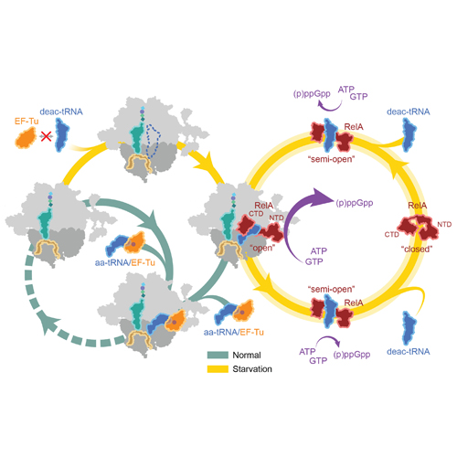 The stringent factor RelA adopts an open conformation on the ribosome to stimulate ppGpp synthesis