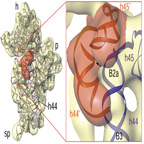 Ribosome binding factor A (RbfA) is a bacterial cold shock response protein, required for an efficient processing of the 5' end of the 16S ribosomal RNA (rRNA) during assembly of the small (30S) ribosomal subunit. Here we present a crystal structure of Thermus thermophilus (Tth) RbfA and a three-dimensional cryo-electron microscopic (EM) map of the Tth 30S.RbfA complex. RbfA binds to the 30S subunit in a position overlapping the binding sites of the A and P site tRNAs, and RbfA’s functionally important C terminus extends toward the 5' end of the 16S rRNA. In the presence of RbfA, a portion of the 16S rRNA encompassing helix 44, which is known to be directly involved inmRNA decoding and tRNA binding, is displaced. These results shed light on the role played by RbfA duringmaturation of the 30S subunit, and also indicate how RbfA provides cells with a translational advantage under conditions of cold shock.